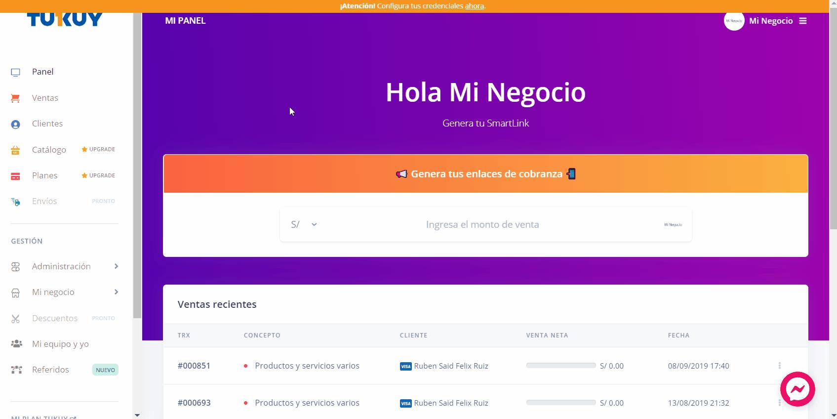 También, evita presionar el boton de “Renovar credenciales” ya que esto provocará que todos los sistemas que estén conectados con tu cuenta (como Tukuy) pierdan la comunicación y debas reconfigurarlos.
