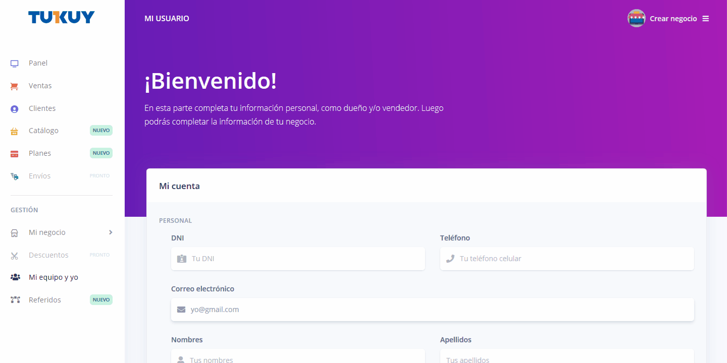 1. Regístrate en Tukuy. ¡Es muy sencillo!